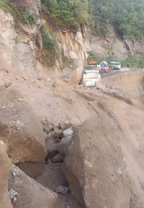 कान्तिलोपथमा वर्षासँगै पहिरो जाँदा सडक अवरुद्ध