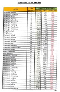 काठमाण्डौ–भद्रपुर तीन सय, विराटनगरका लागि दुई सय ४०, जनकपुरका लागि एक सय ३०, पोखराका लागि एक सय ५५, भरतपुरका लागि एक सय १०, भैरहवाका लागि दुई सय पाँच, नेपालगञ्जका लागि एक सय ८५ र सुर्खेतका लागि तीन सय ४५ रुपैयाँ हवाई भाडा घटेको छ ।निगमले गएकाे सोमवार हवाई इन्धनमा प्रतिलिटर १० रुपैयाँले घटाएकाे थियो ।