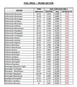 यसअघि यो रुटमा यात्रुले हवाई यात्राका लागि सात हजार पाँच सय १० रुपैयाँ तिर्नुपर्थ्याे । अब सात हजार ७० रुपैयाँ भाडा कायम गरिएको छ । त्यस्तै पर्वतीय उडान अर्थात् ‘माउन्टेन फ्लाइट’ को भाडा तीन सय ४५ ले घटेर अधिकतम भाडा पाँच हजार चार सय ९० रुपैयाँ कायम भएको छ ।