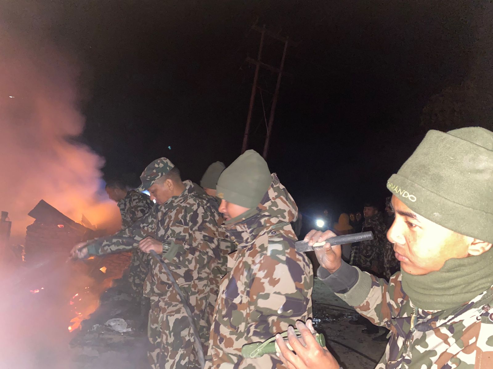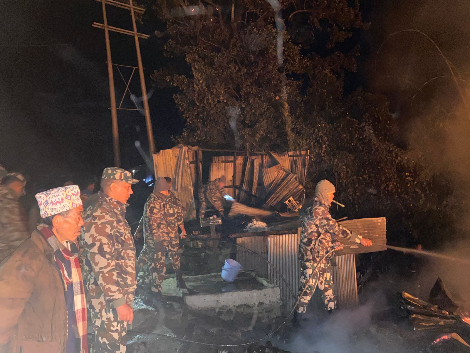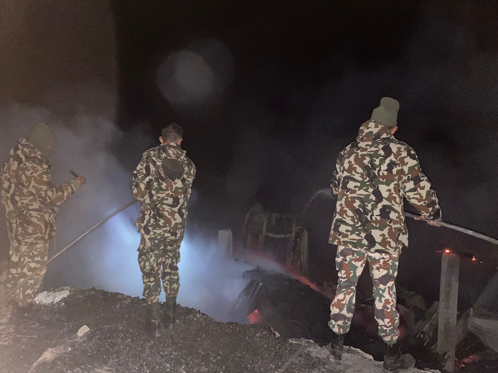 मिक्वाखोला–४ फुङफुङे तेम्बा बजारमा मध्यरात आगलागी, नेपाली सेनासहित सुरक्षाकर्मीको सहकार्यमा नियन्त्रण