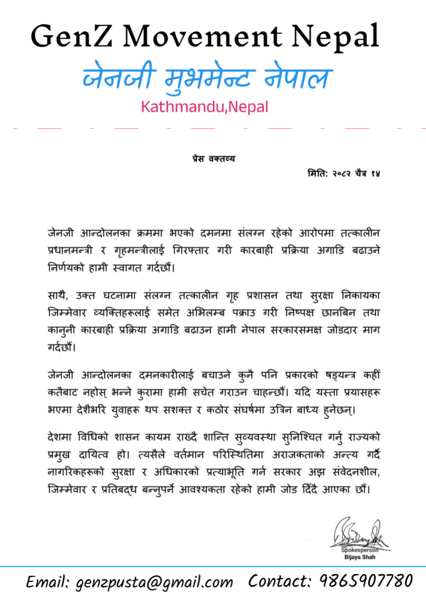 जेन जि मुभमेन्ट नेपालले राखेको प्रेस वक्तव्य यस्तो छ हेर्नुहोस्।