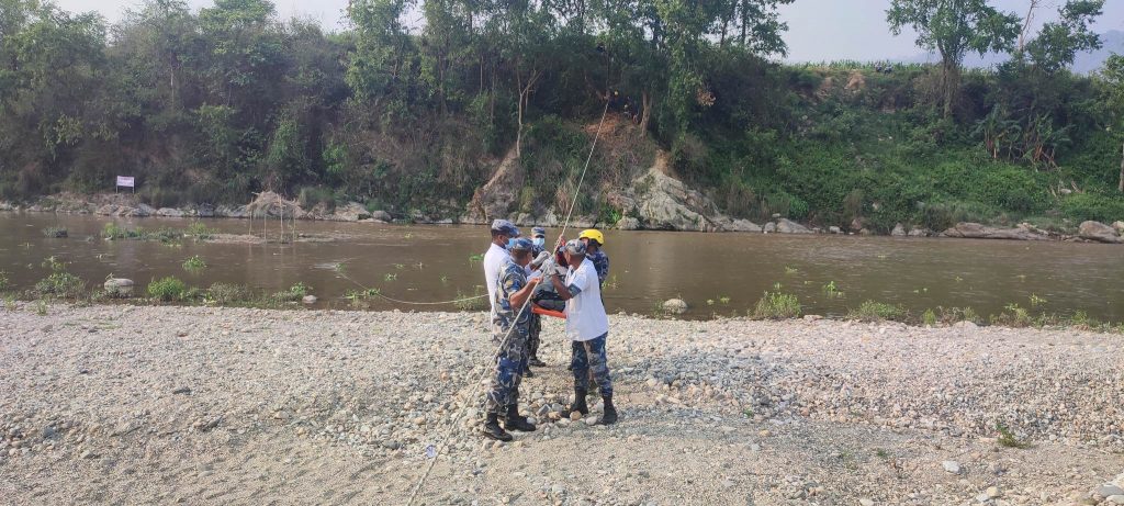 हेटौंडा । बिपदबाट हुन सक्ने क्षतिको न्यूनिकरणको लागि पूर्व तयारी स्वरुप सशस्त्र प्रहरी वल नेपाल नं १४ गण मकवानपुरद्वारा डेमो प्रर्दशन गरेको छ । सोमबार हेटौडा ११ स्थित राप्तीखोलामा रहेको झोलुङ्गे पुल मुनि विपद्ले पुन्याउने क्षतिलाई न्यूनिकरण गर्न सकिने उपायहरुका लागी जल बिपद उद्धार सम्बन्धी अभ्यासहरु प्रस्तुत गरीएको थियो । प्रकोप पश्चात उद्धार सुरक्षकर्मीहरुको भुमिका कस्तो रहने र सुचना प्रबाहमा कसरी ध्यान दिने भन्ने कुरा सशस्त्र प्रहरीहरुद्धारा अभ्यास प्रस्तुत गरीएको थियो । अभ्यास पश्चात कार्यक्रमलाई सम्बोधन गर्दै हेटौडा उपमहानगरपालीकाका मेयर मिना कुमारी लामाले विपद्को बेलामा हतोत्साहित नभईकन स्थानिय श्रोत साधनको सही तरिकाले उपभोग गर्न सकेमा आफु सुरक्षित रहनुका साथै समुदायका अन्य व्यक्तिहरुलाई समेत सोही विधिको प्रयोगद्वारा सुरक्षित पार्न सकिने सन्देश दिन यस्ता अभ्यासहरुले चेतना फैलाउने बताउनु भयो ।उहाँले बिपदबाट बचाउने प्राबिधिक सामाग्रीहरु खरिद्धका लागी उपमहानगरले थालनी गरीसकेको बताउदै बिपद आउनुपुर्वनै यसबाट सचेत रहन नागरीकहरुलाई आग्रह गर्नु भयो । सशस्त्र प्रहरी बलले हेटौडामा बिभिन्न समयमा आईपरेका बिपदका घट्नामा खेलेको भुमिकाबारे प्रसंसा गर्दै उपमहानगर हरेक कार्यमा सहयोग गर्न तयारी रहेको बताउनु भयो ।यस्तै आन्तरीक मामिला तथा कानुन मन्त्रालयका सचिब धुर्व गैडाले सशस्त्र प्रहरीद्धारा सचेतनाका लागी बिपदबाट बच्न देखाईएको प्रत्यक्ष अभ्यासले पनि जनधन क्षतिहुनबाट कम हुने बताउनु भयो । मकवानपुरका प्रमुख जिल्ला अधिकारी राजेन्द्रदेब पाण्डेले बिपदका बेला सबैभन्दा पहिला मानबिय क्षतिबाट बच्ने उपायहरु अबलम्बन गर्न यस्ता अभ्यासहरुले सहयोग पुग्ने बताउनु भयो । जोखिमका बेला आत्तिएर भन्दा पनि आफै चनाखो भएर सुरक्षा निकायको सहयोग लिन तर्फ लाग्न जोड दिनु भयो ।कार्यक्रममा सशस्त्र प्रहरी बल नेपाल नं १४ गण हेडक्वाटर मकवानपुरका गणपति अनिल कार्कीले सशस्त्र प्रहरी बल नेपालको स्थापनाकाल देखि नै विभिन्न किसिमका प्रकोपहरू भुकम्प, सडक दुर्घटना, बाढीपहिरो, आगलागी जस्ता मानविय तथा प्रकृतिक प्रकोपहरुमा उद्धार कार्य तथा जोखिम न्यूनीकरणका लागीे काम गर्दै आएको बताउनु भयो । नेपालमा वर्षेनी जल उत्पन्न प्रकोपकै कारण धेरै जनधनको क्षति हुने गरेको बताउदै गणपती कार्कीले कुनै पनि विषद् र विपद्सँग सम्बन्धित जनचेतना अभिवृद्धि तथा विपद् पश्चात तत्काल उद्धार कार्य गर्न सक्षम, कुशल एवं तालीम प्राप्त दक्ष जनशक्ति उत्पादनका साथ साथै विभिन्न किसिमका प्रकोपका घटनाहरुबाट जनधनको क्षतिबाट बचाउन सचेतना सहित यो कार्यक्रमको आयोजना गरीएको बताउ