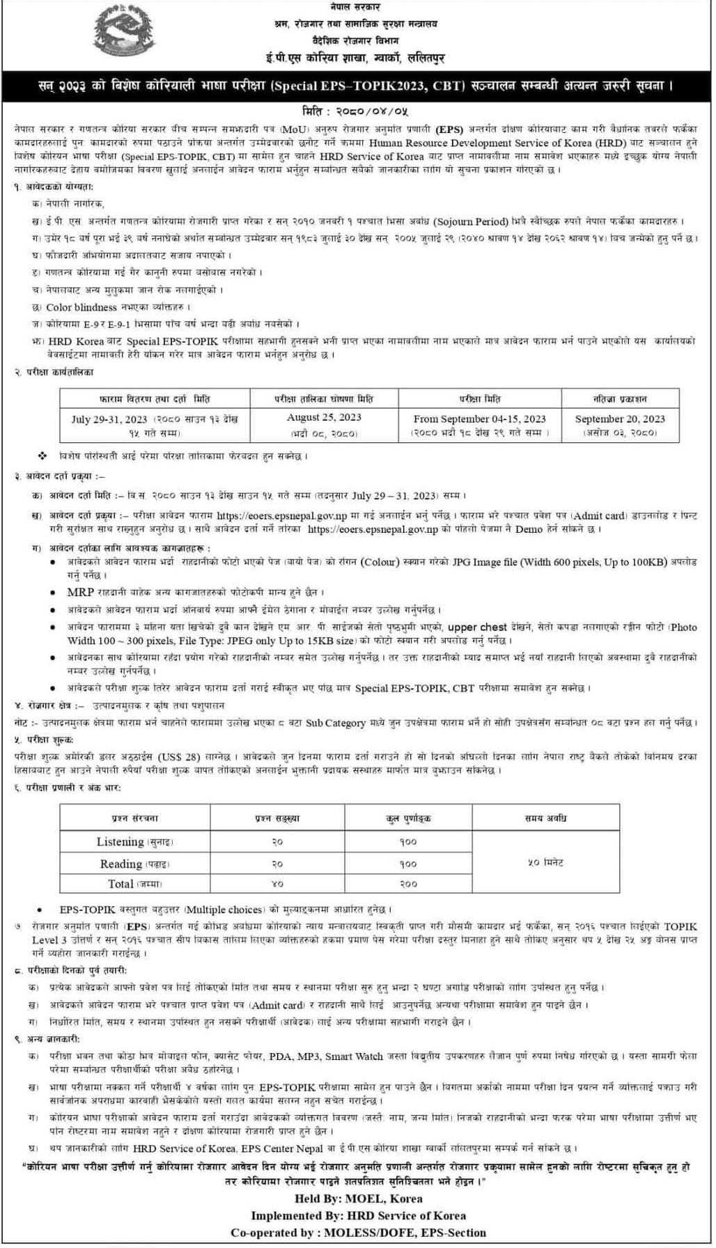 ईपीएस कोरियन भाषाको परीक्षाको आवेदन खुल्ला